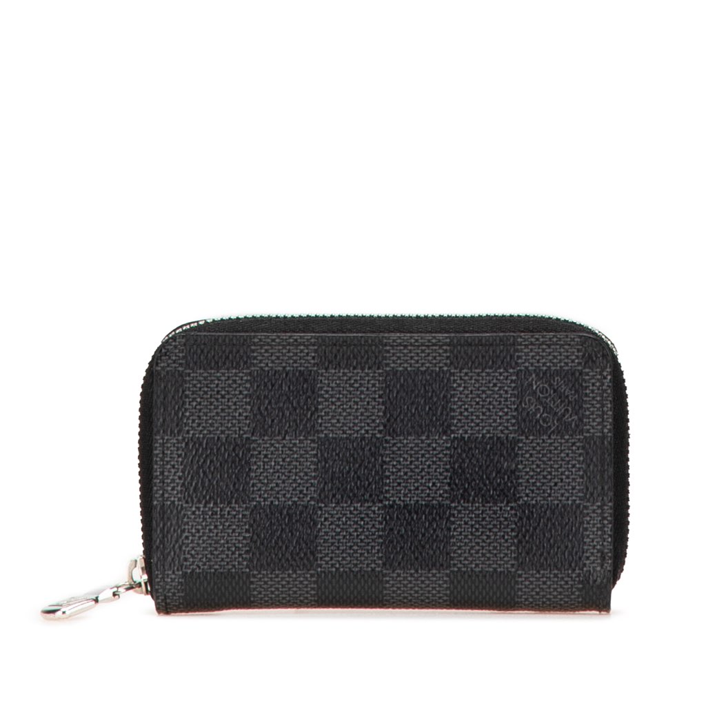 This coin pouch features a damier graphite canvas body, a zip-around closure, and interior slip pockets.