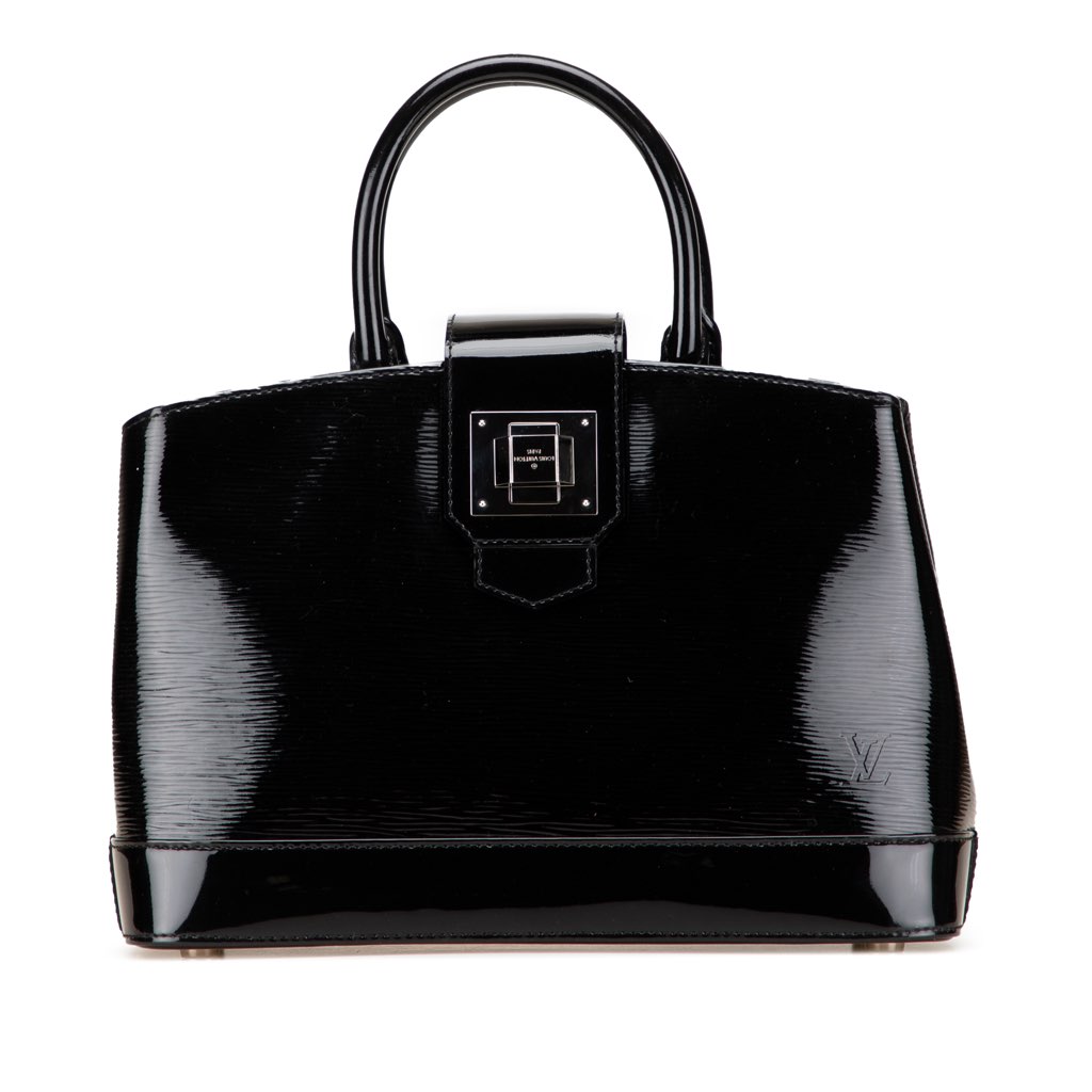 The Mirabeau PM features an Epi leather body, rolled handles, open top with flat strap and twist lock closure and interior zip and slip pockets.