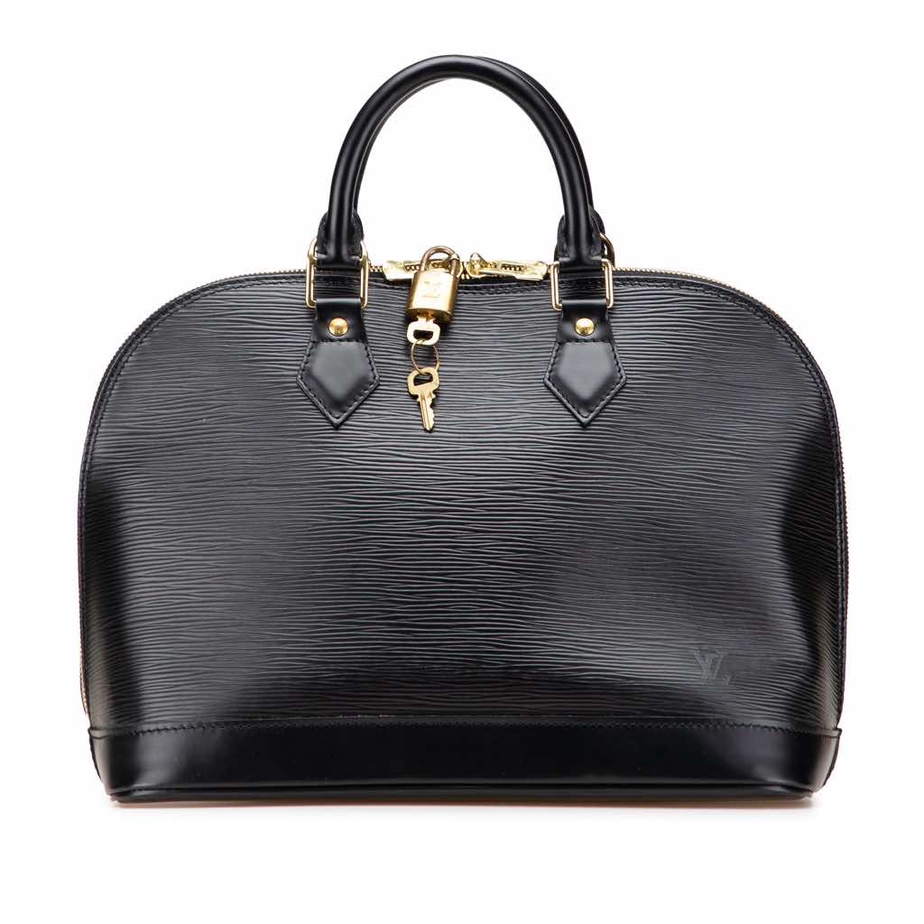 The Alma PM features an epi leather body, rolled leather handles, a top zip closure and an interior slip pocket.