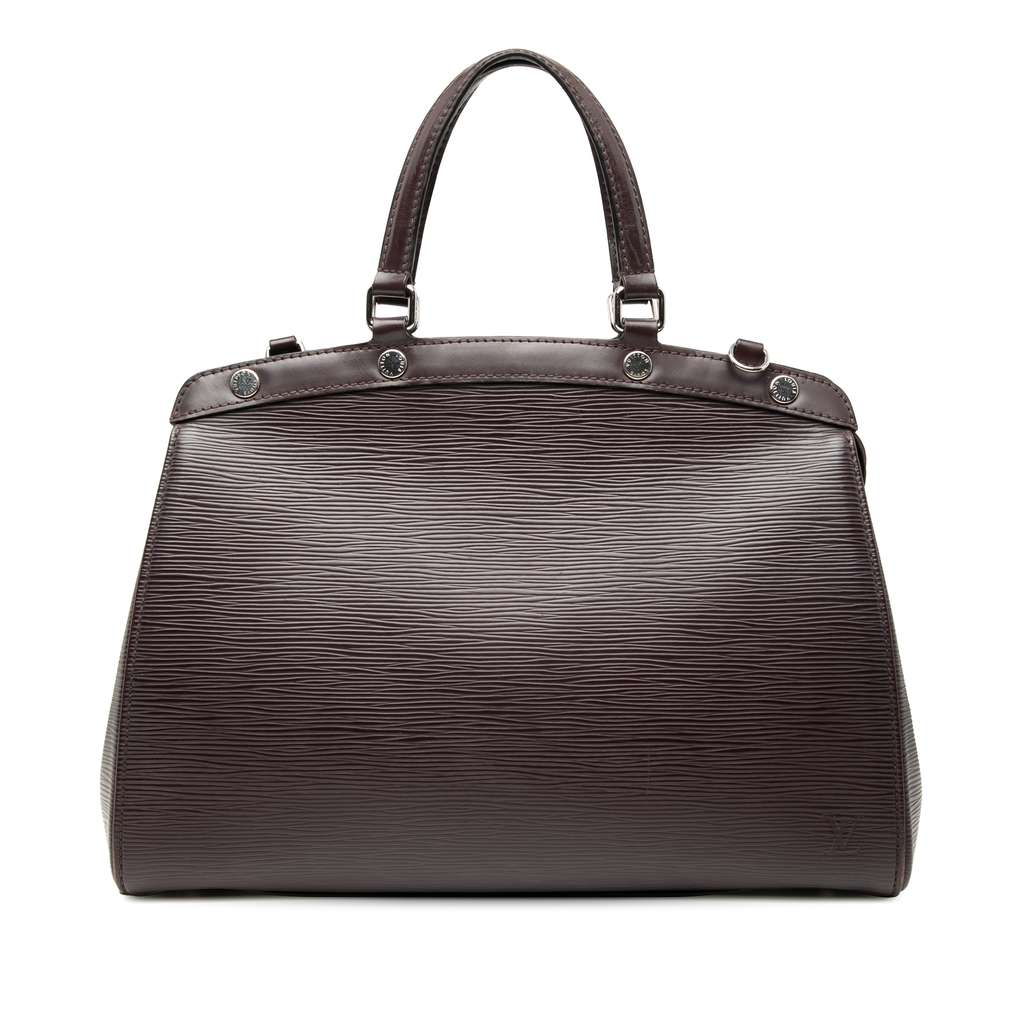 The Brea MM features an epi leather body, flat handles, a top zip closure, and interior zip and slip pockets.
