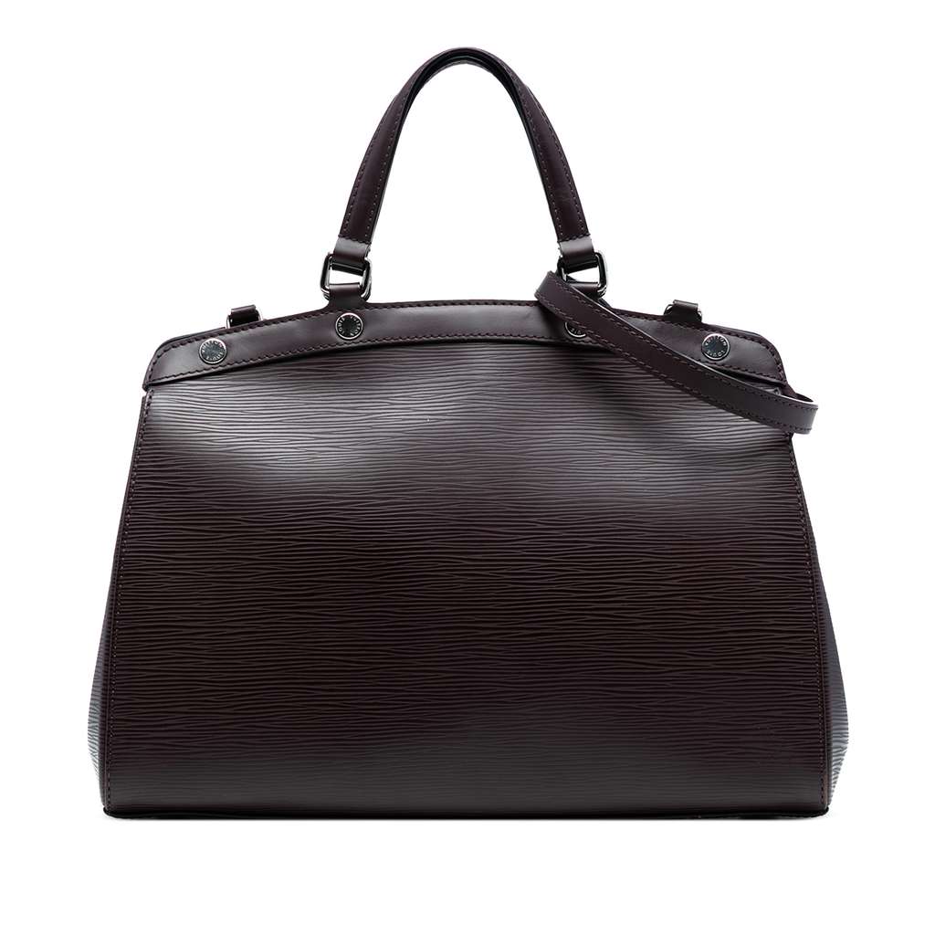 The Brea MM features an epi leather body, flat handles, a detachable flat leather strap, a top zip closure, and interior zip and slip pockets.