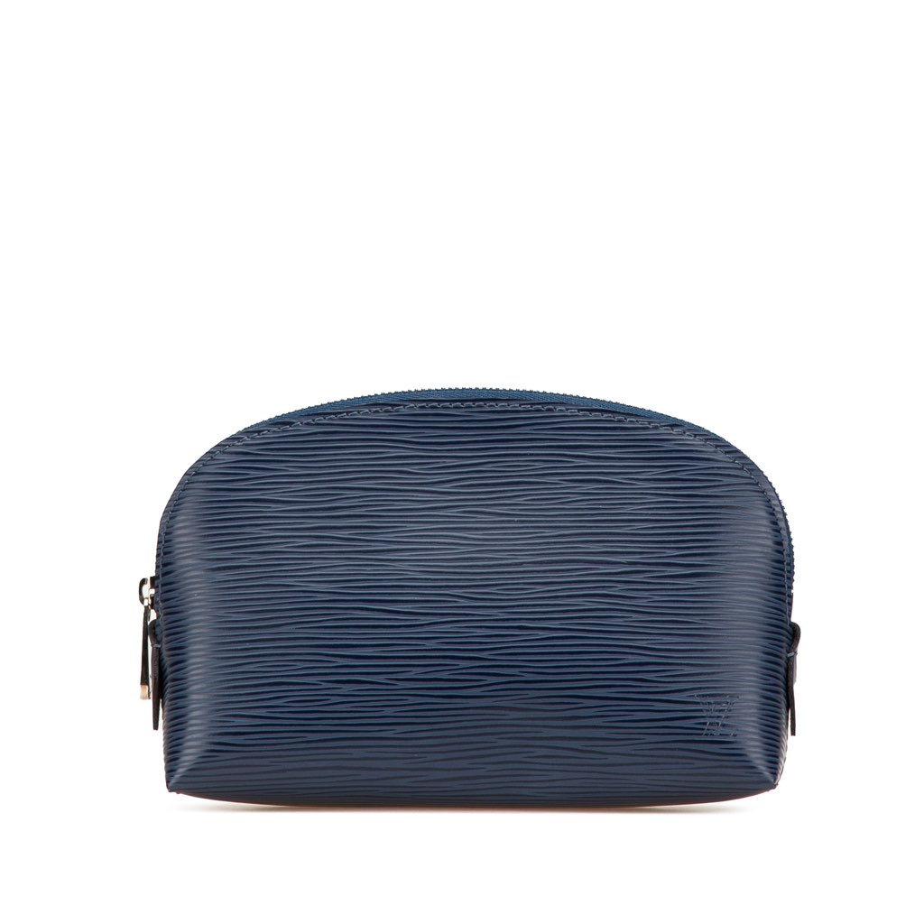This pouch features an epi leather body, a top zip closure, and an interior slip pocket.