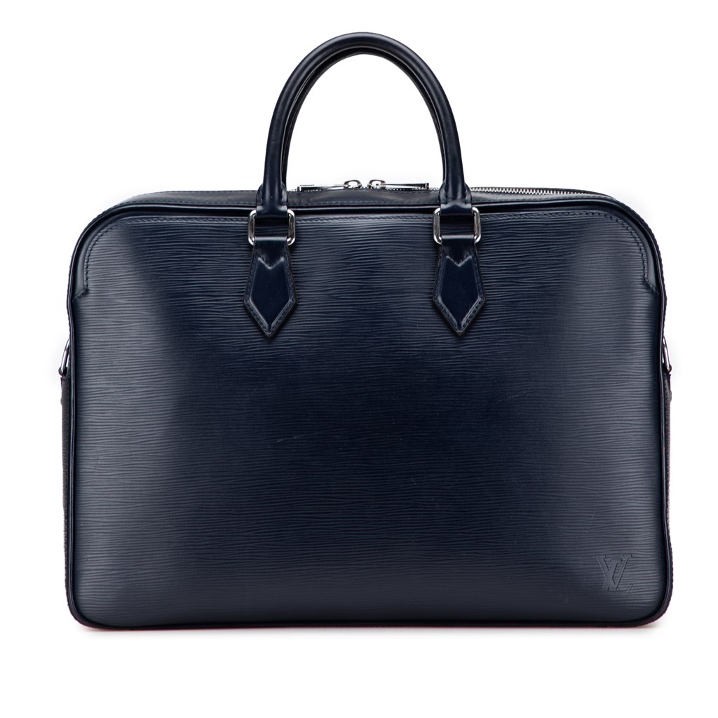 The Dandy features an epi leather body, rolled leather handles, a top zip closure, exterior slip compartments with magnetic closure, and an interior zip pocket.