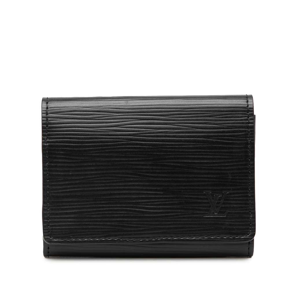 This card holder features an epi leather body, a flap with snap closure, and interior slip compartments.