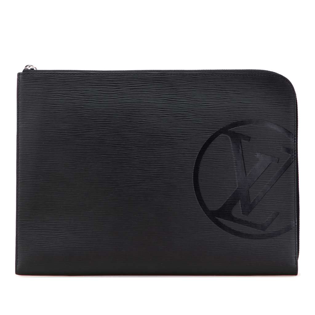 The Pochette Jour GM features an epi leather body, a zip around closure, and an interior slip pocket.