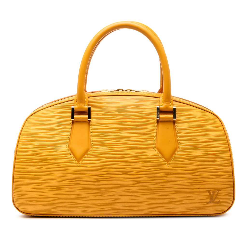 The Jasmine features an epi leather body, rolled leather handles, a top zip closure, and an interior slip pocket.