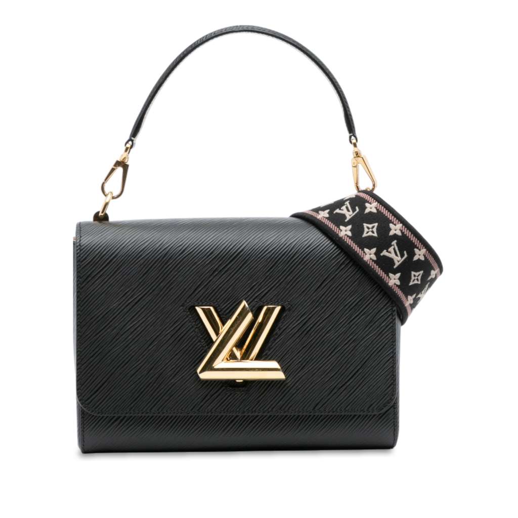 This satchel features an epi leather body, a detachable flat leather top handle, a detachable flat monogram canvas shoulder strap, a front flap with an LV twist lock closure, and interior slip pocket.
