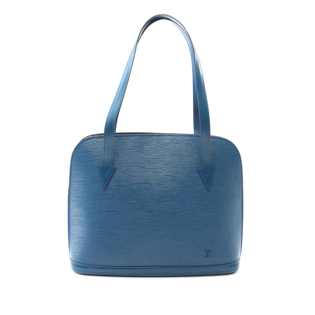 The Lussac features an epi leather body, flat straps, a top zip closure, and an interior zip pocket.