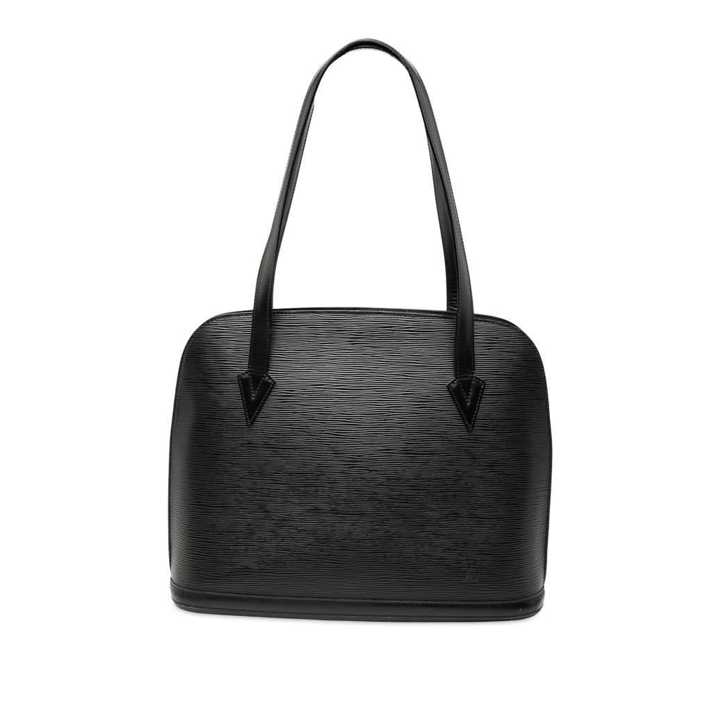 The Lussac features an epi leather body, flat straps, a top zip closure, and interior zip and slip pockets.