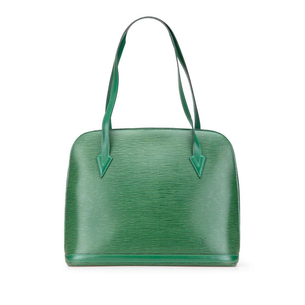 The Lussac features an epi leather body, flat straps, a top zip closure, and an interior zip pocket.
