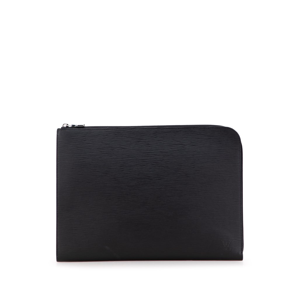 The Pochette Jour GM features an epi leather body, a zip around closure, and an interior slip pocket.