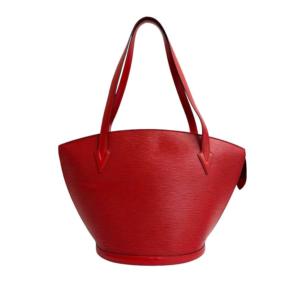 The Saint Jacques GM features an epi leather body, flat leather handles, a top zip closure, and an interior zip pocket.
