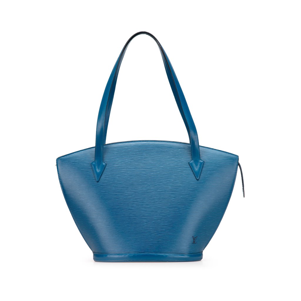 The Saint Jacques GM features an epi leather body, flat straps, a top zip closure, and an interior zip pocket.