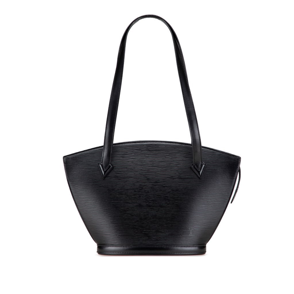 The Epi Saint Jacques PM features an epi leather body, flat leather shoulder straps, a top zip closure, and an interior slip pocket.