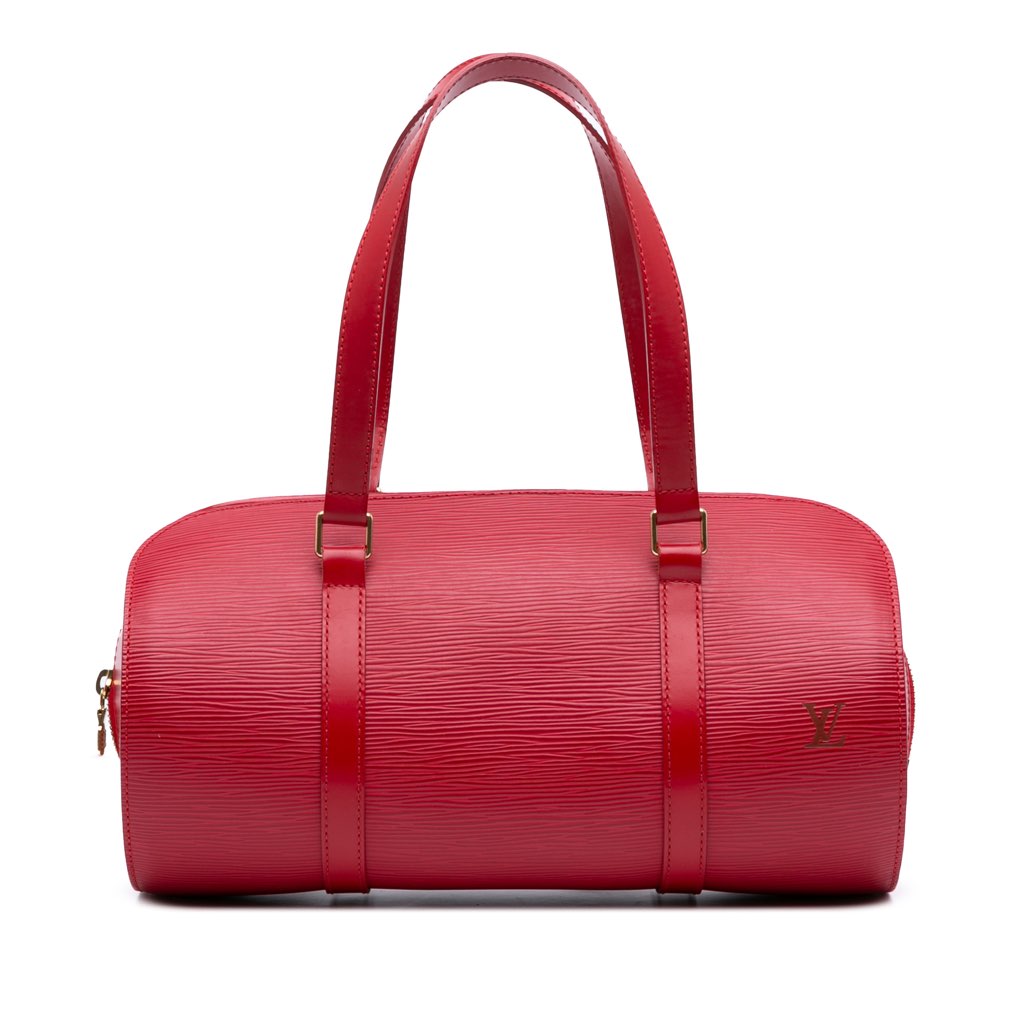 The Soufflot features an epi leather body, flat leather handles, a top zip closure, and an interior slip pocket.
