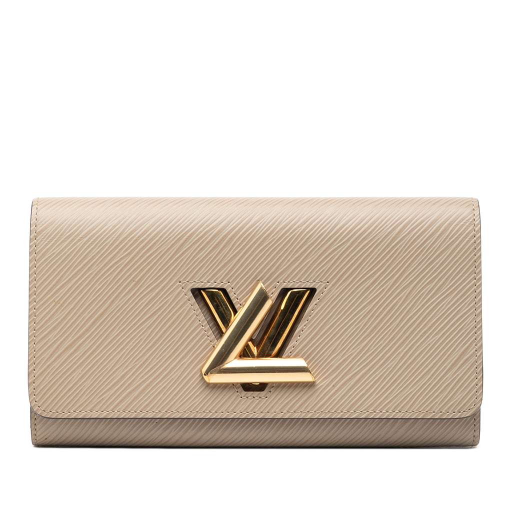 The Twist wallet features an epi leather body, a silver-tone twist lock closure, and interior zip and slip compartments.
