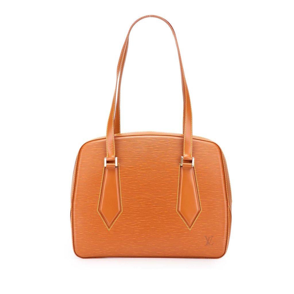 The Voltaire bag features an epi leather body, flat shoulder straps, a top zip closure, an exterior slip pocket, and an interior slip pocket.