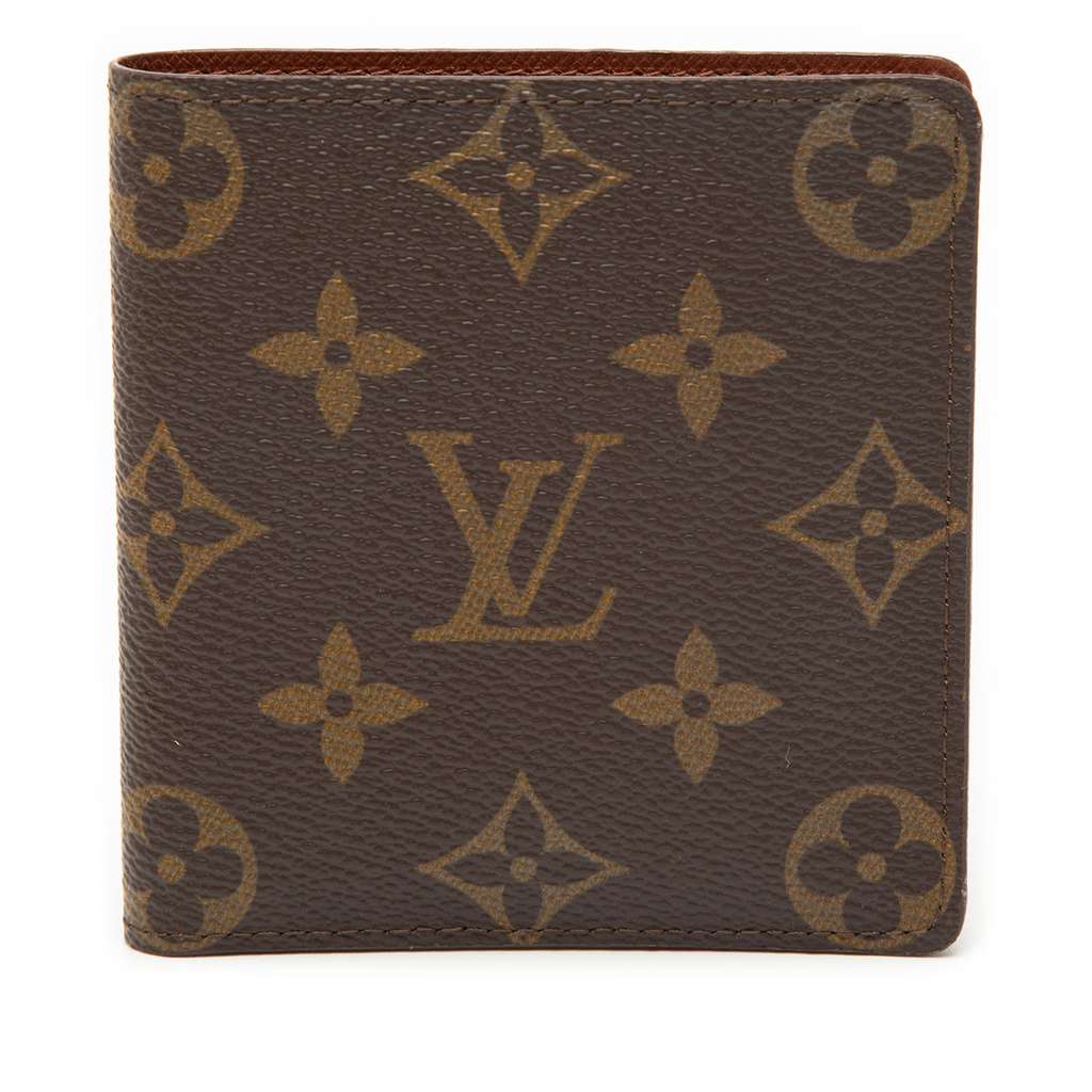 This wallet features a monogram canvas body, and interior slip pockets.