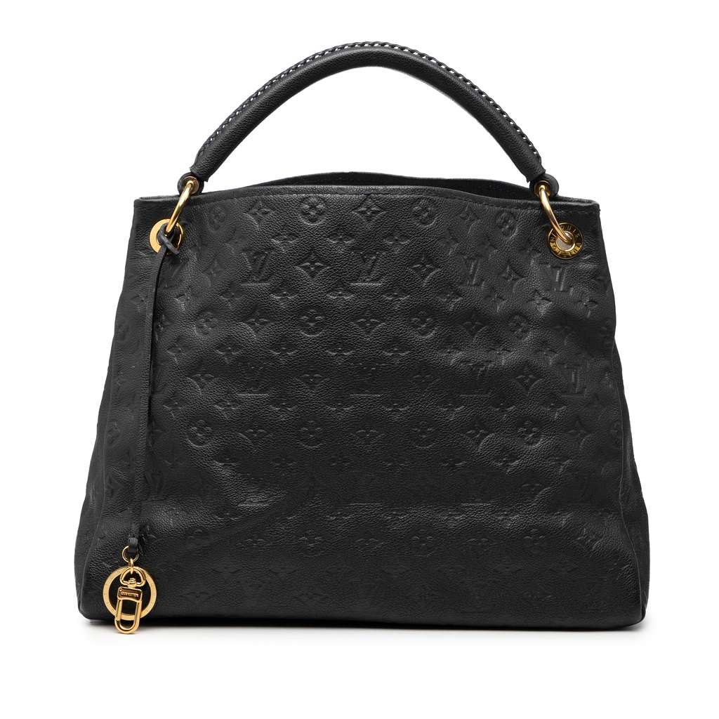 The Artsy MM features an empreinte leather body, a rolled leather strap, open top, and interior zip and slip pockets.