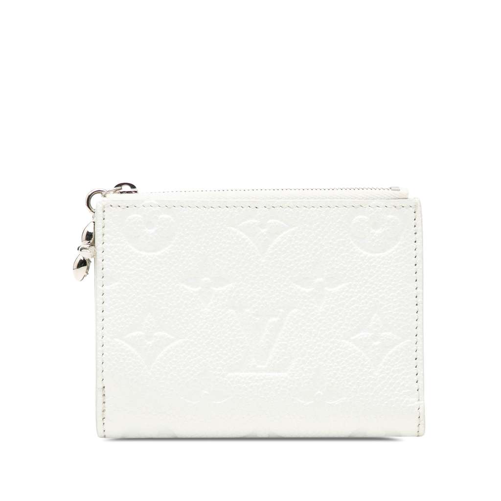 The Lisa wallet features a monogram empreinte leather body, a flap with a snap button closure, exterior zip compartment, and interior slip pockets.
