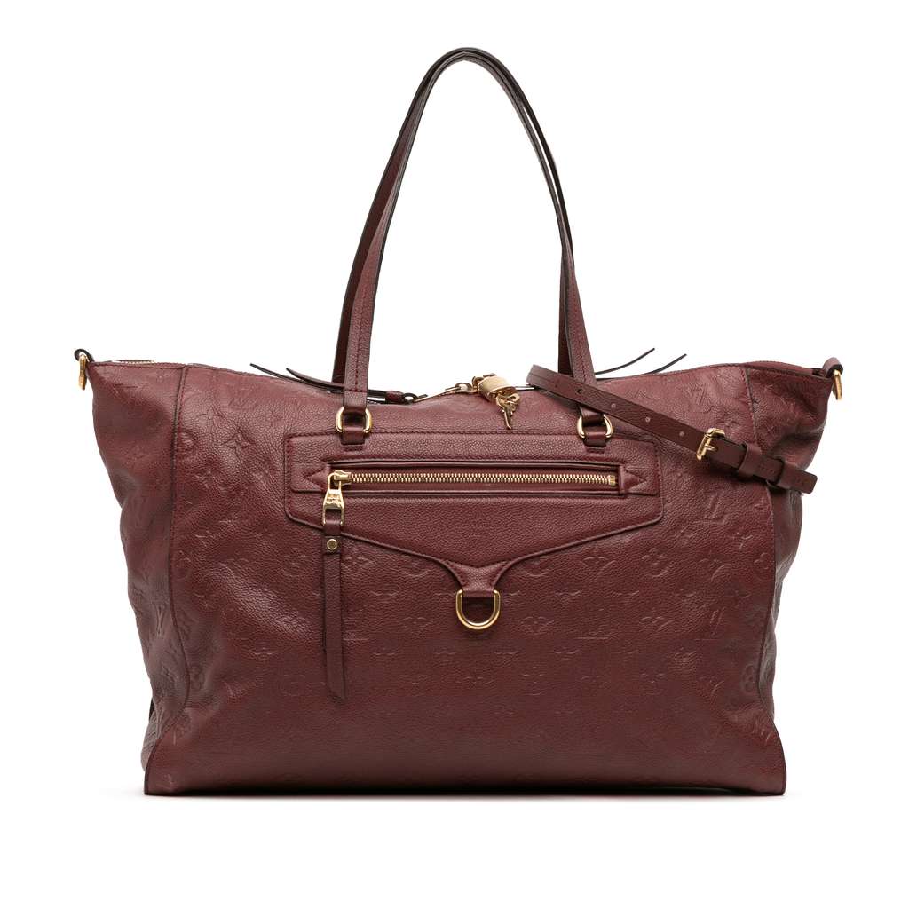 The Lumineuse GM features monogram empreinte leather, flat leather top handles, a detachable and adjustable shoulder strap, a top zip closure, an exterior front zip pocket, and interior zip and slip pockets.