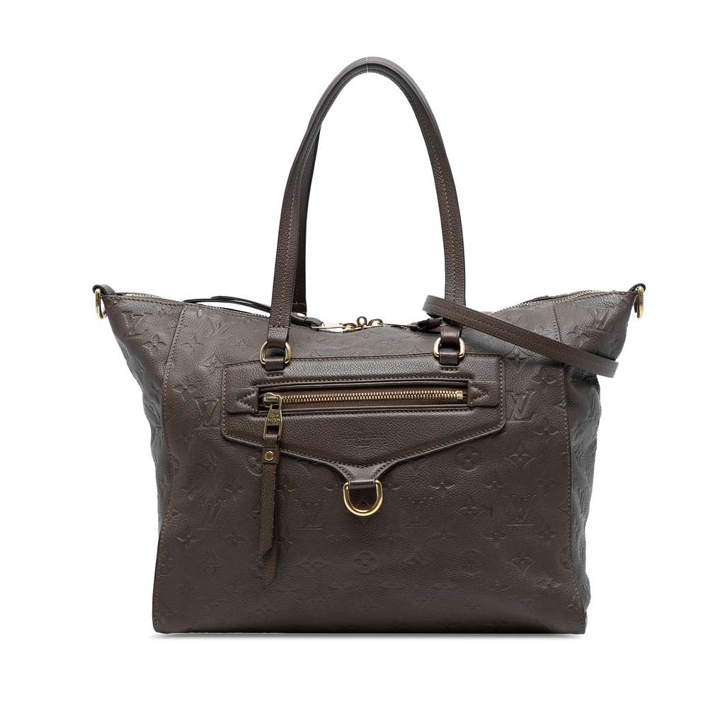 The Lumineuse PM features monogram empreinte leather, flat leather top handles, a detachable shoulder strap, a top zip closure, an exterior front zip pocket, and an interior zip pocket.