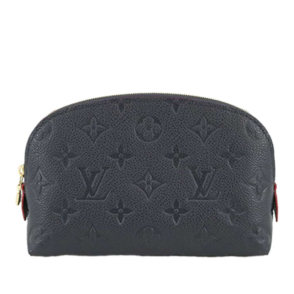 The Pochette Cosmetique features a monogram empreinte leather body, a top zip closure, and an interior slip pocket.