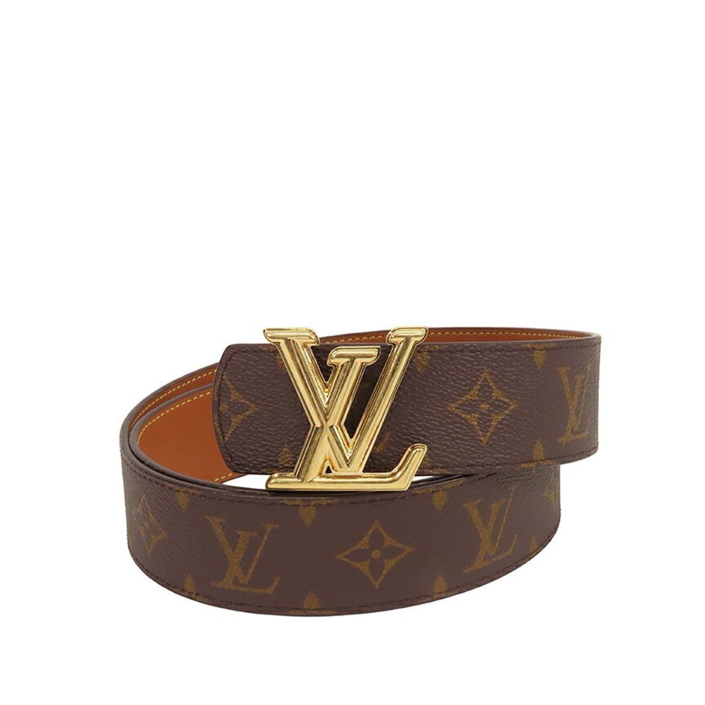 This belt features a reversible monogram canvas and leather body with gold-tone hardware and a peg-in-hole closure.