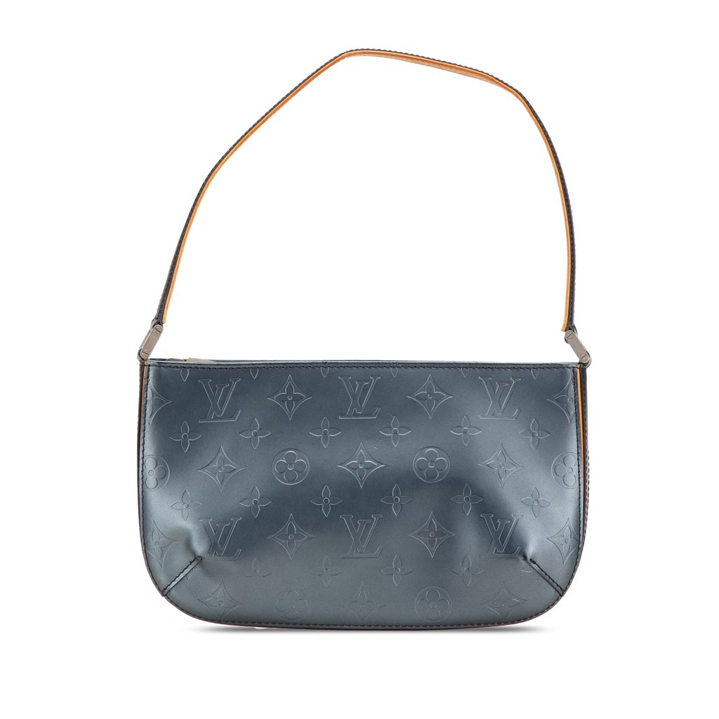 The Mat Fowler features a monogram mat leather body, a flat leather shoulder strap, and a top zip closure.