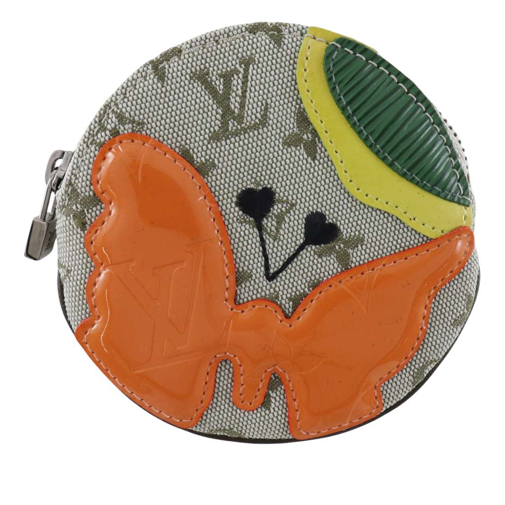 This coin pouch features an appliqued canvas body and a zip around closure.