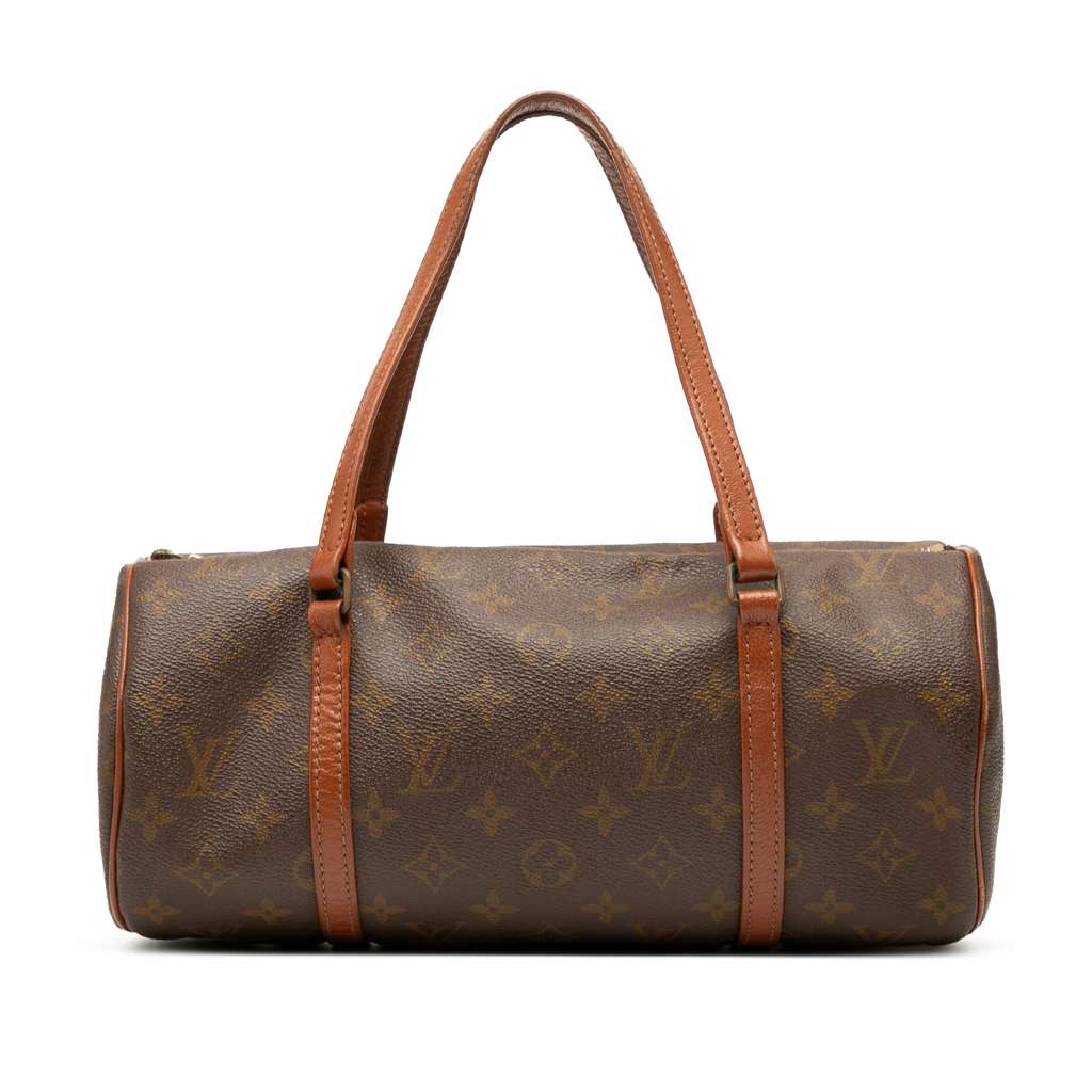The Papillon 30 features a monogram canvas body, leather handles, and a top zip closure.