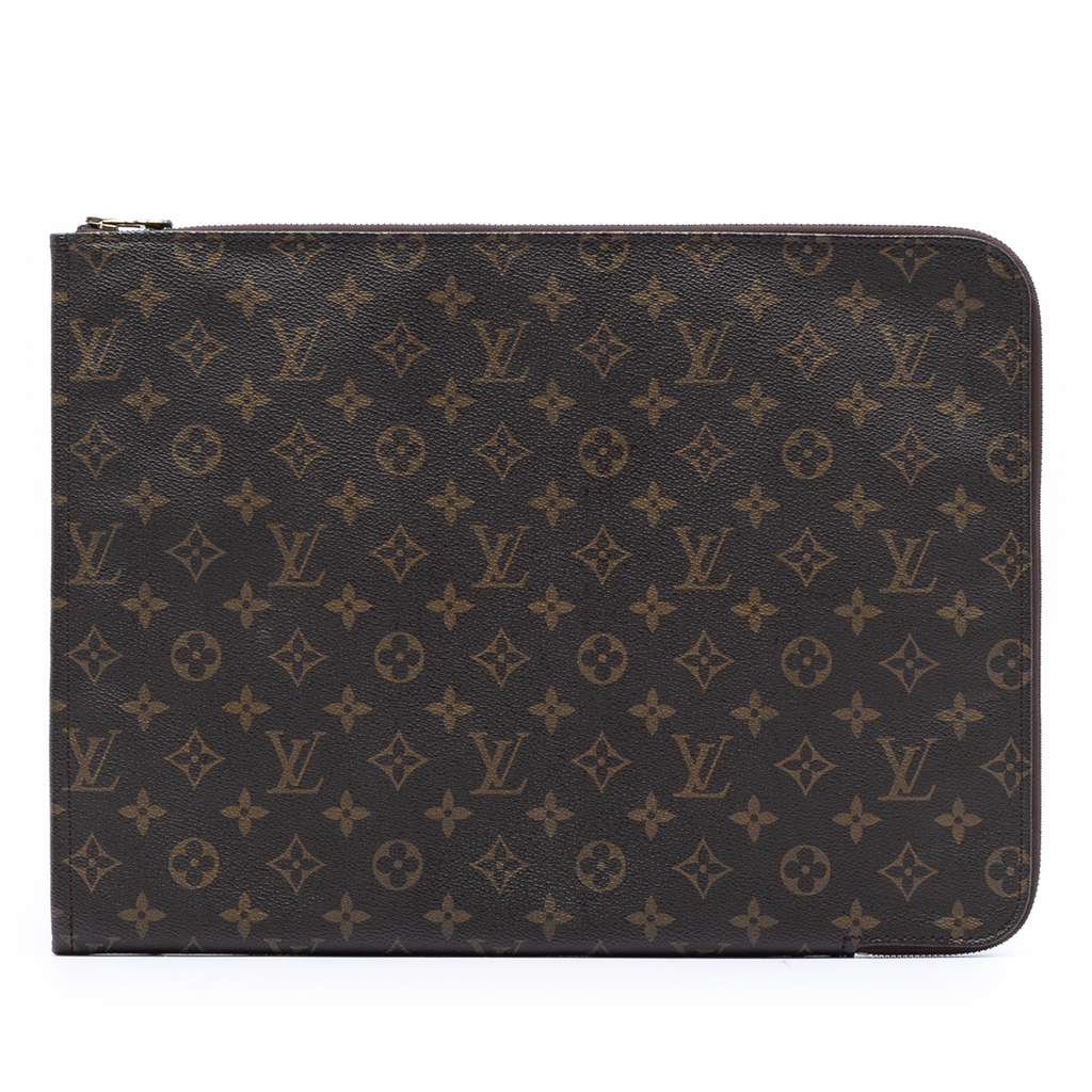 This clutch bag features a monogram canvas body, and a zip around closure.