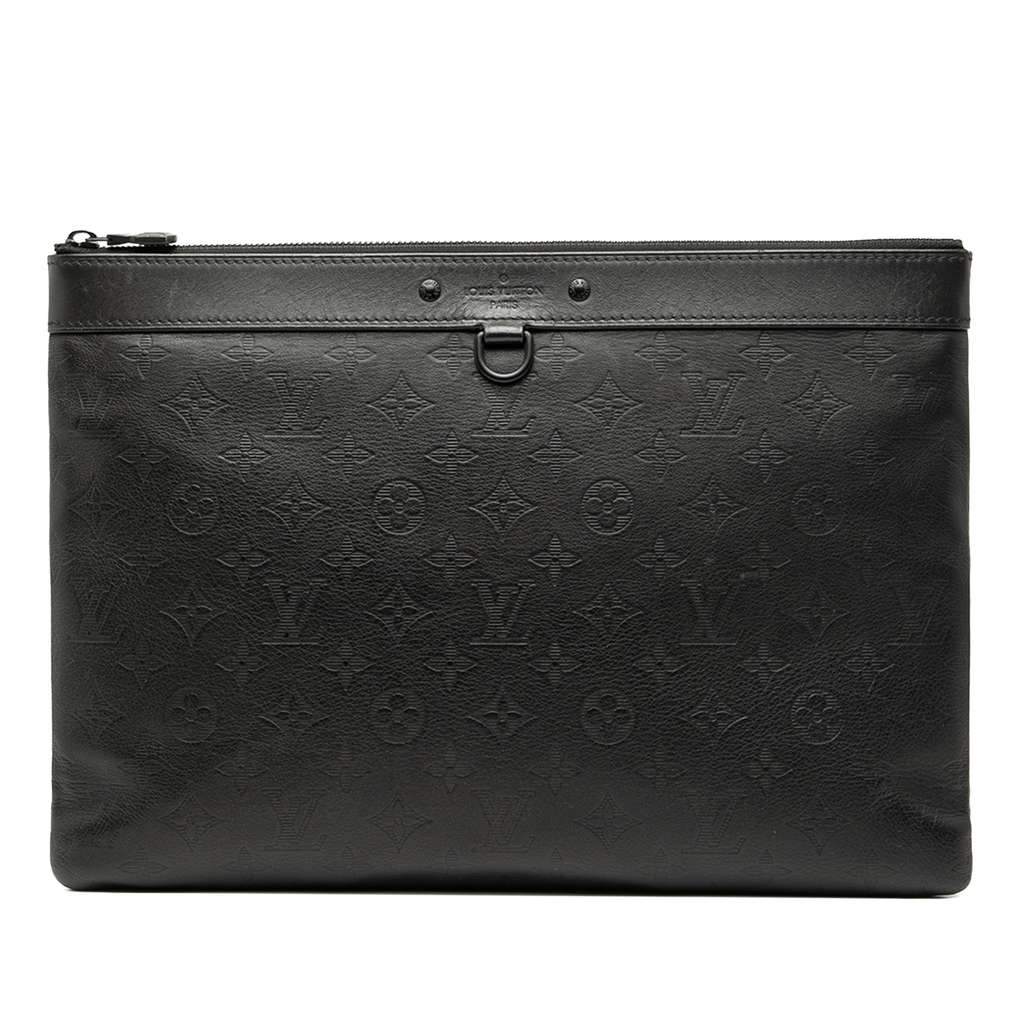 The Discovery Pochette features a leather body, a top zip closure, and an interior slip pocket.