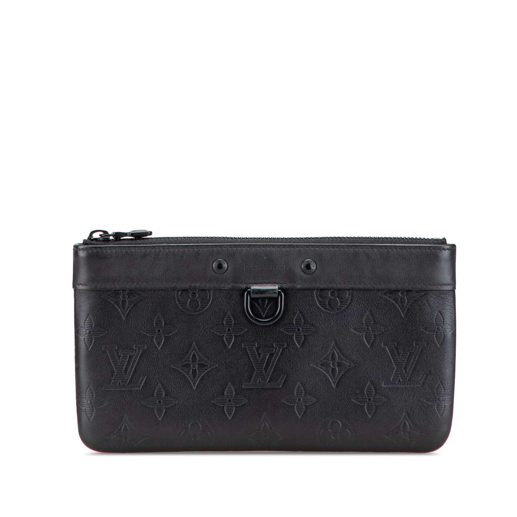 The Pochette Discovery PM features a leather body, a top zip closure, and interior slip pockets.