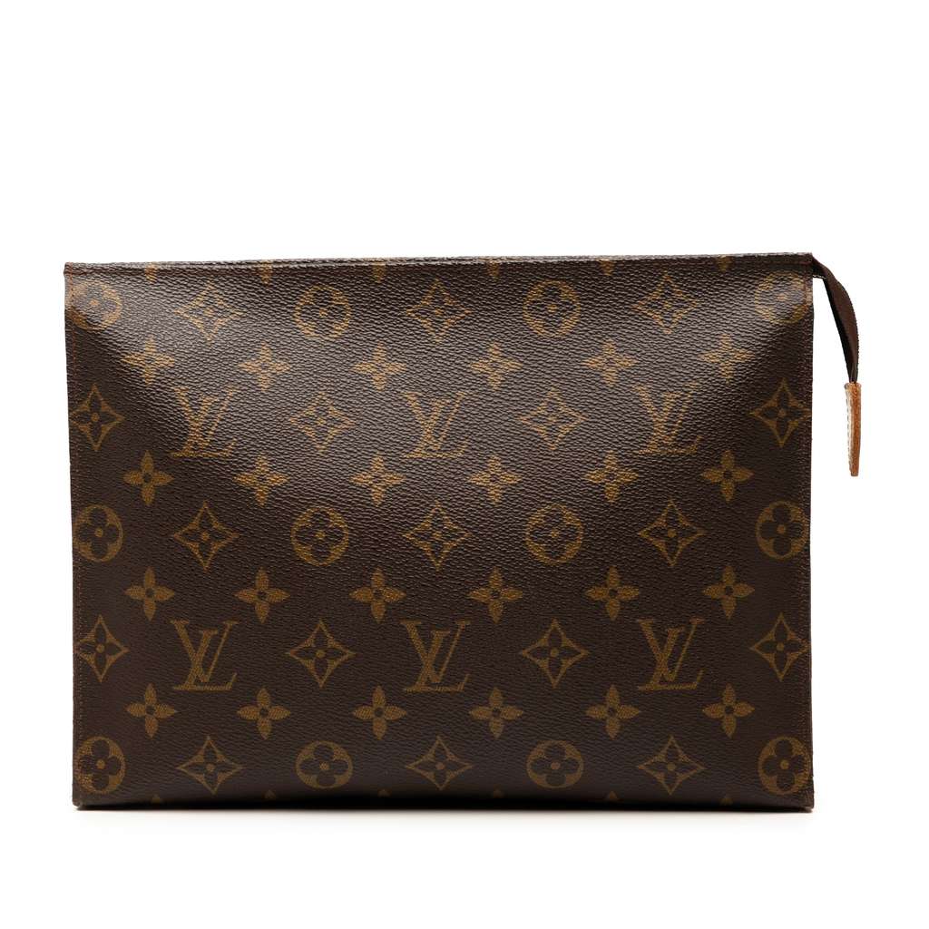 The Toiletry Pouch 26 features a monogram canvas body, and a top zip closure.
