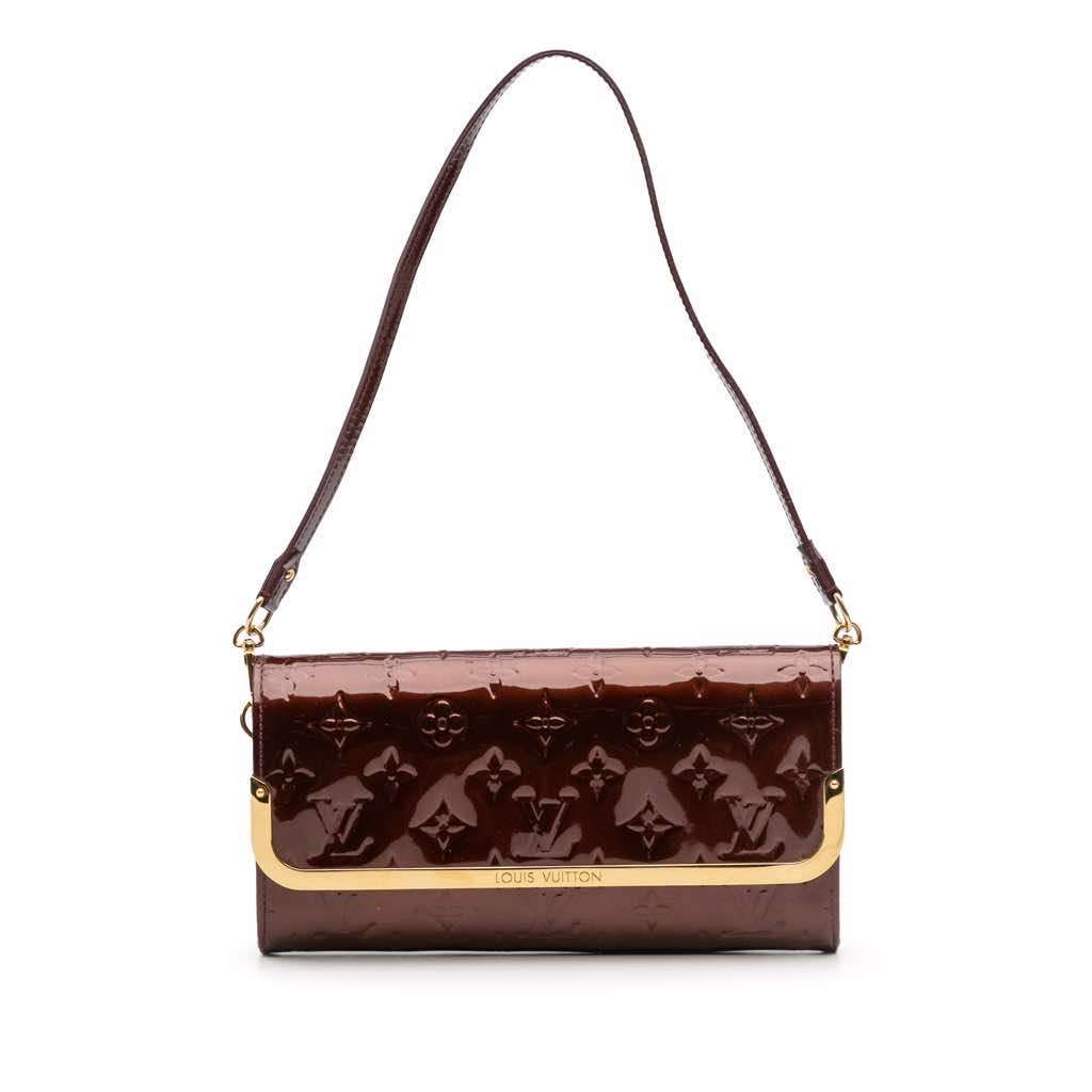 The Rossmore MM features a monogram vernis leather body, flat leather strap, front flap with magnetic closure, and interior zip and slip pockets.