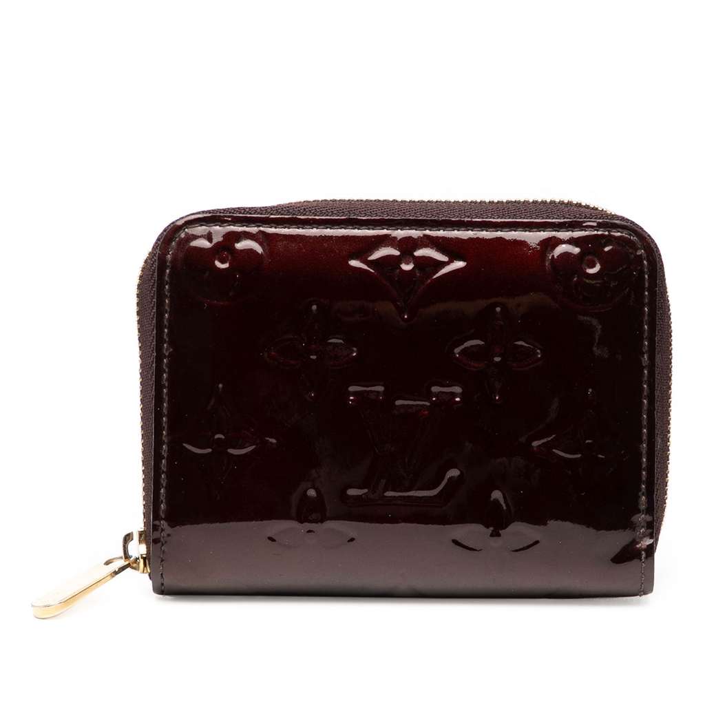 This Coin pouch features a monogram vernis body, a zip around closure, and interior slip compartments.