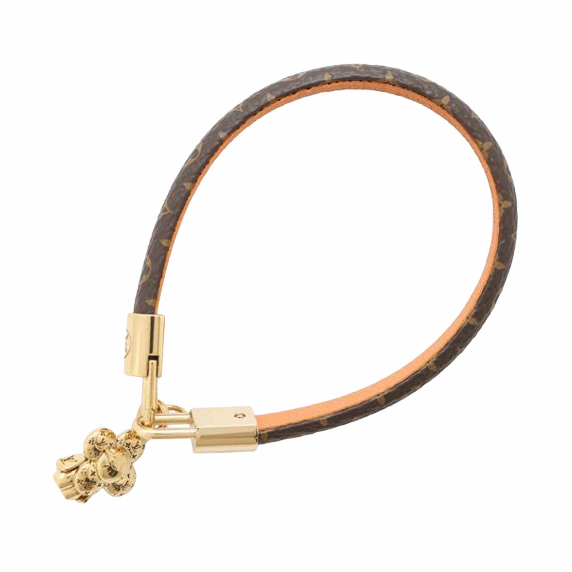 This bracelet features a monogram canvas cord, a gold-tone charm, and a lobster clasp closure.