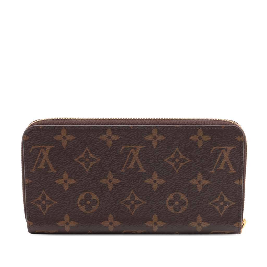 This long wallet features a monogram canvas body, a zip-around closure, an interior zip compartment, and interior slip pockets.