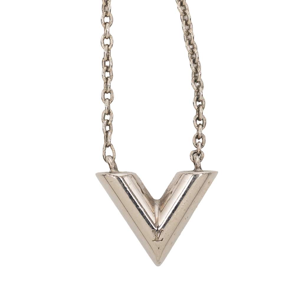 Louis Vuitton Silver Plated Essential V Supple Necklace Silv