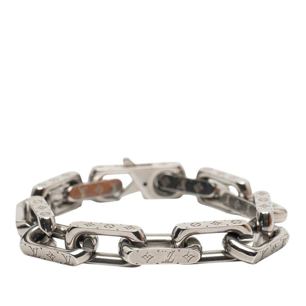This bracelet features a stainless steel metal body in silver color, and a lobster clasp closure.