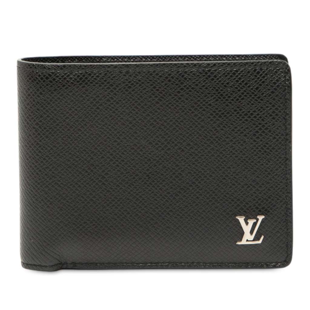 This wallet features a taiga leather body and interior slip compartments.