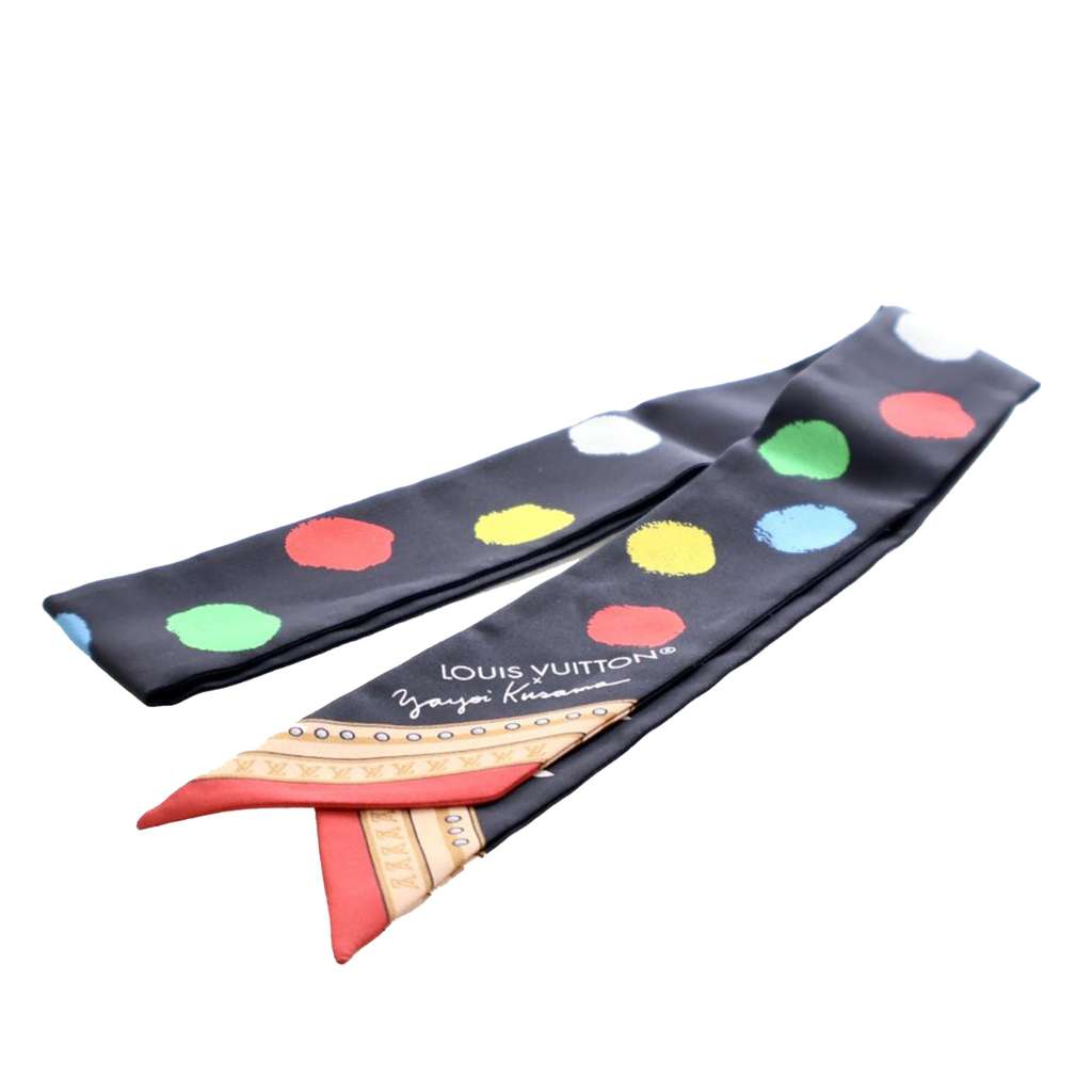 This scarf features the Painted Dots and monogram print on 100% silk.