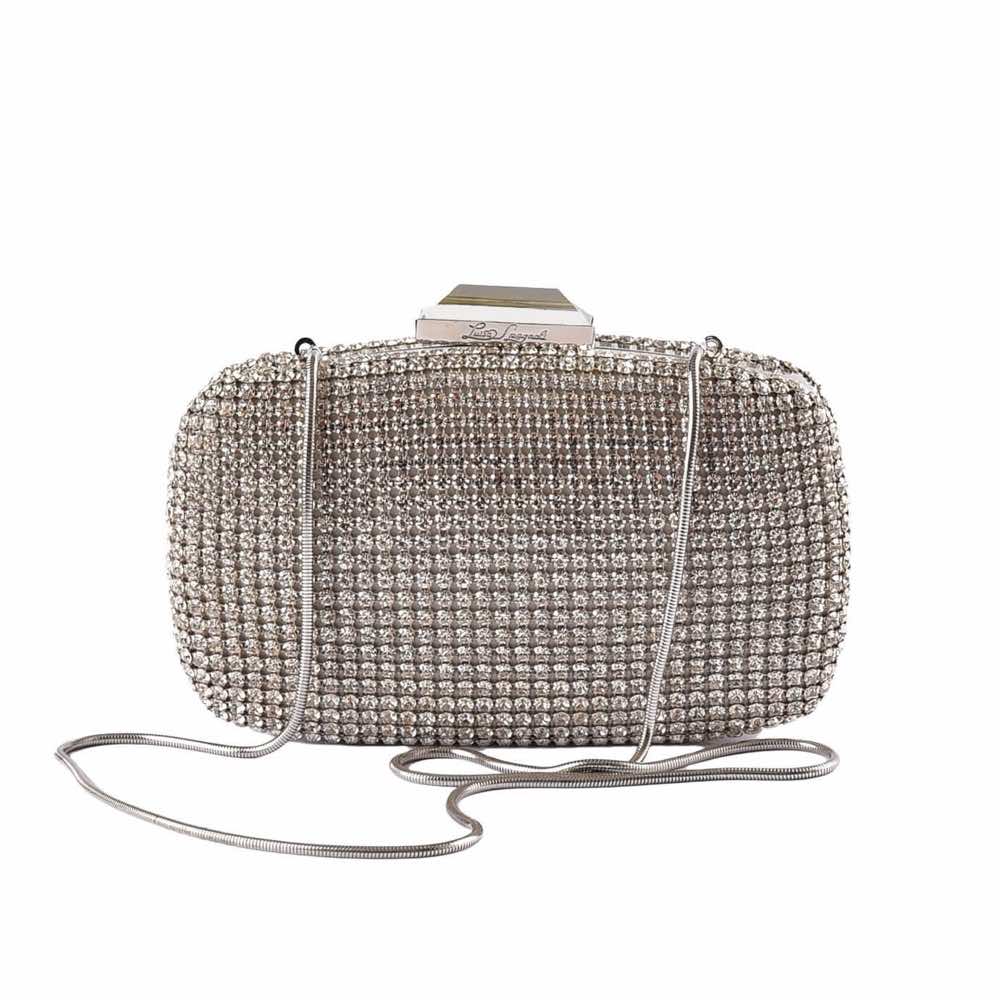Crystal embellished clutch bag, features silk lining with mirror and shoulder strap