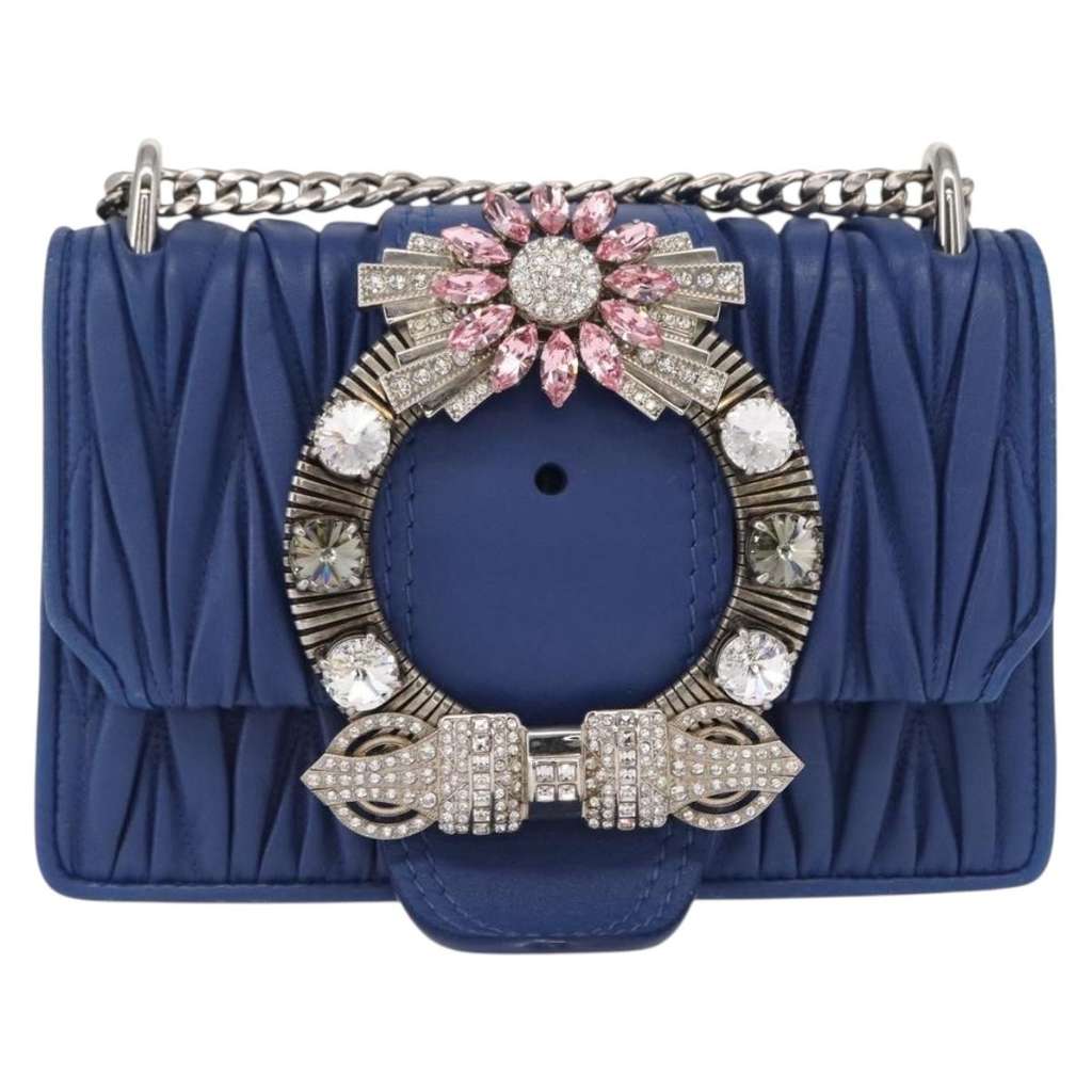 Miu Miu Madras Crystal Buckle Shoulder Bag Blue Small Leathe