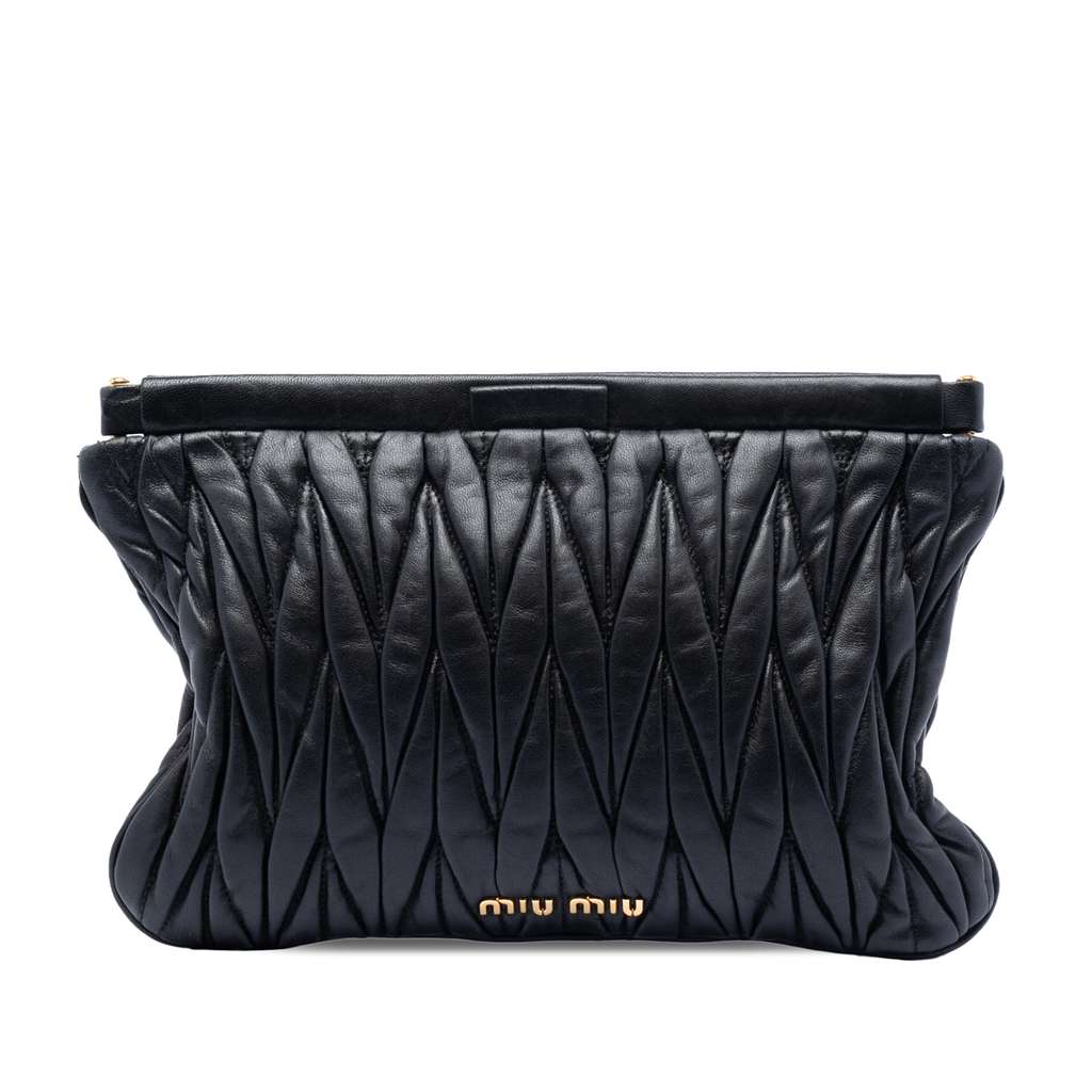 Miu Miu Matelasse Nappa Frame Clutch Black Medium Leather