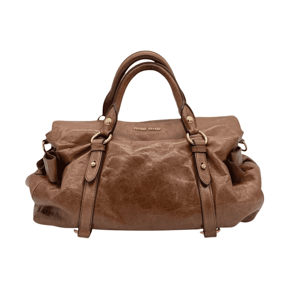 Miu Miu Vitello Lux Bow Brown Small Leather