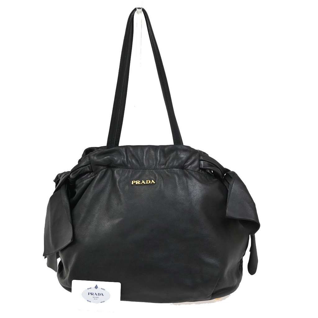 Prada Bow Tie Pleated Tote Black Large Leather | Pre-Loved L