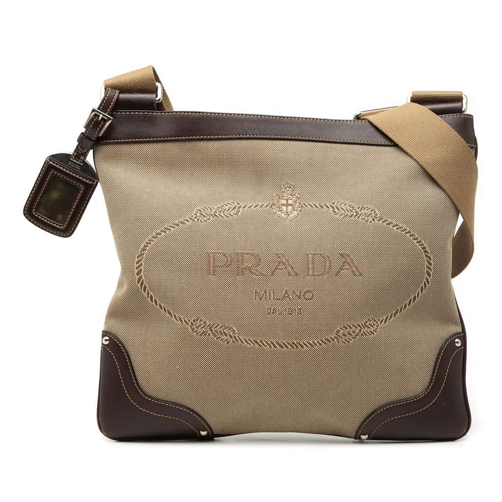 Prada Canvas Canapa Logo Crossbody Beige Large Canvas