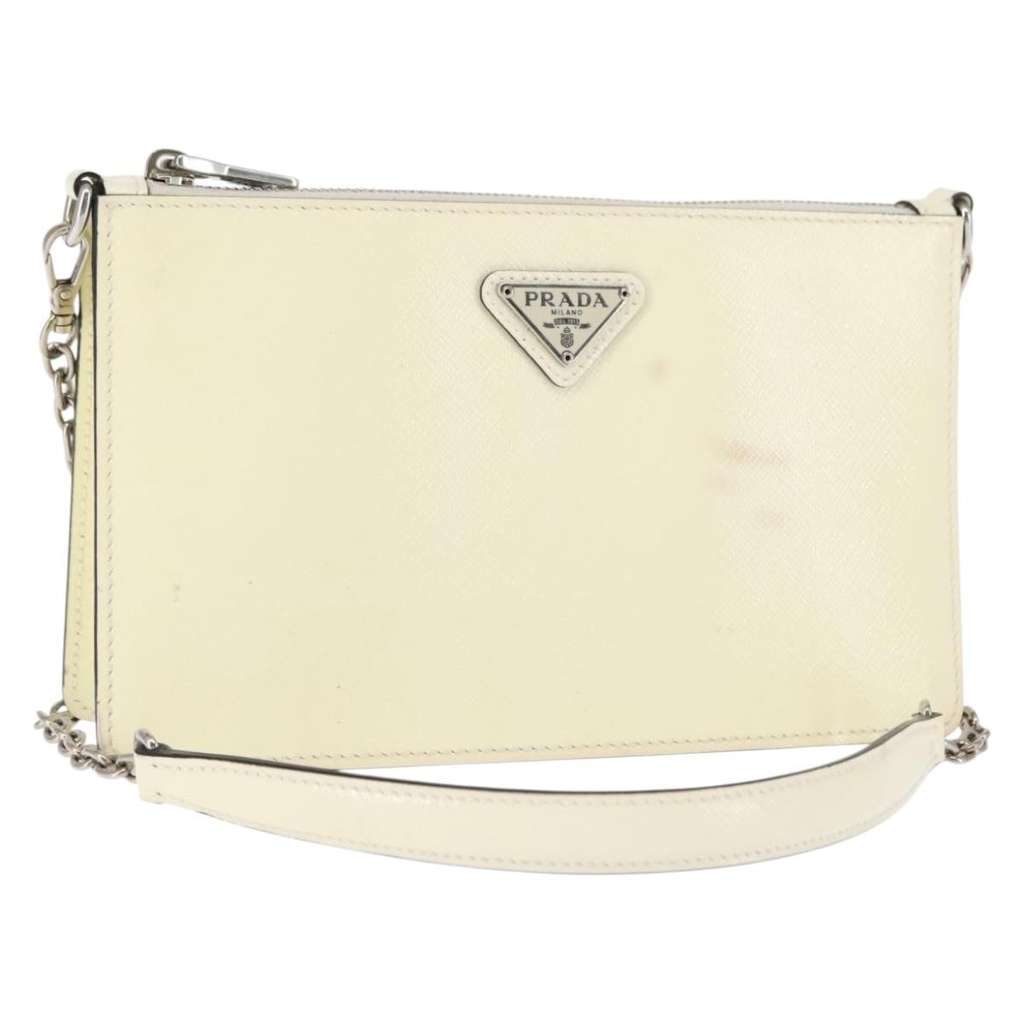 Prada Chain Crossbody Bag Vernice White Small Leather